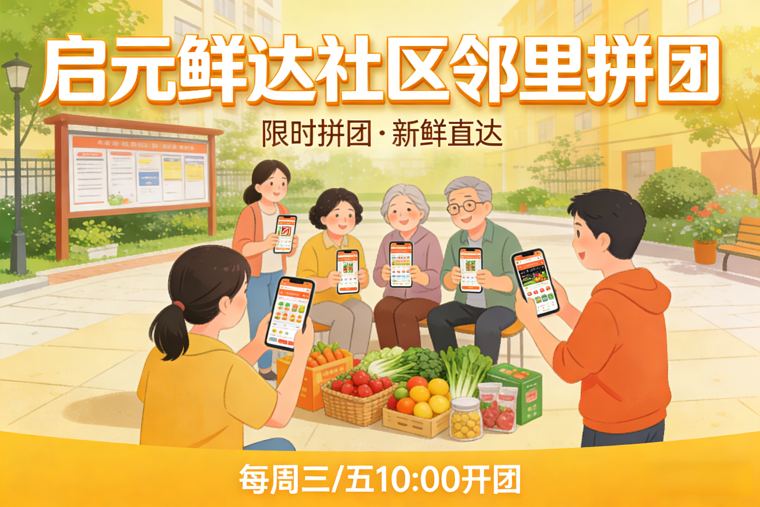 我们倡导每一位居民积极参与启元鲜达的消费与体验:采购新鲜生鲜、预约便民服务、支持本地优质商家,和邻居一起拼团享低价、共享好服务、共获真实惠。在这里,消费不止是满足日常需求,更是连接邻里、助力本地商户的暖心行动,让社区生活更有烟火气,让家门口的便利常驻身边。